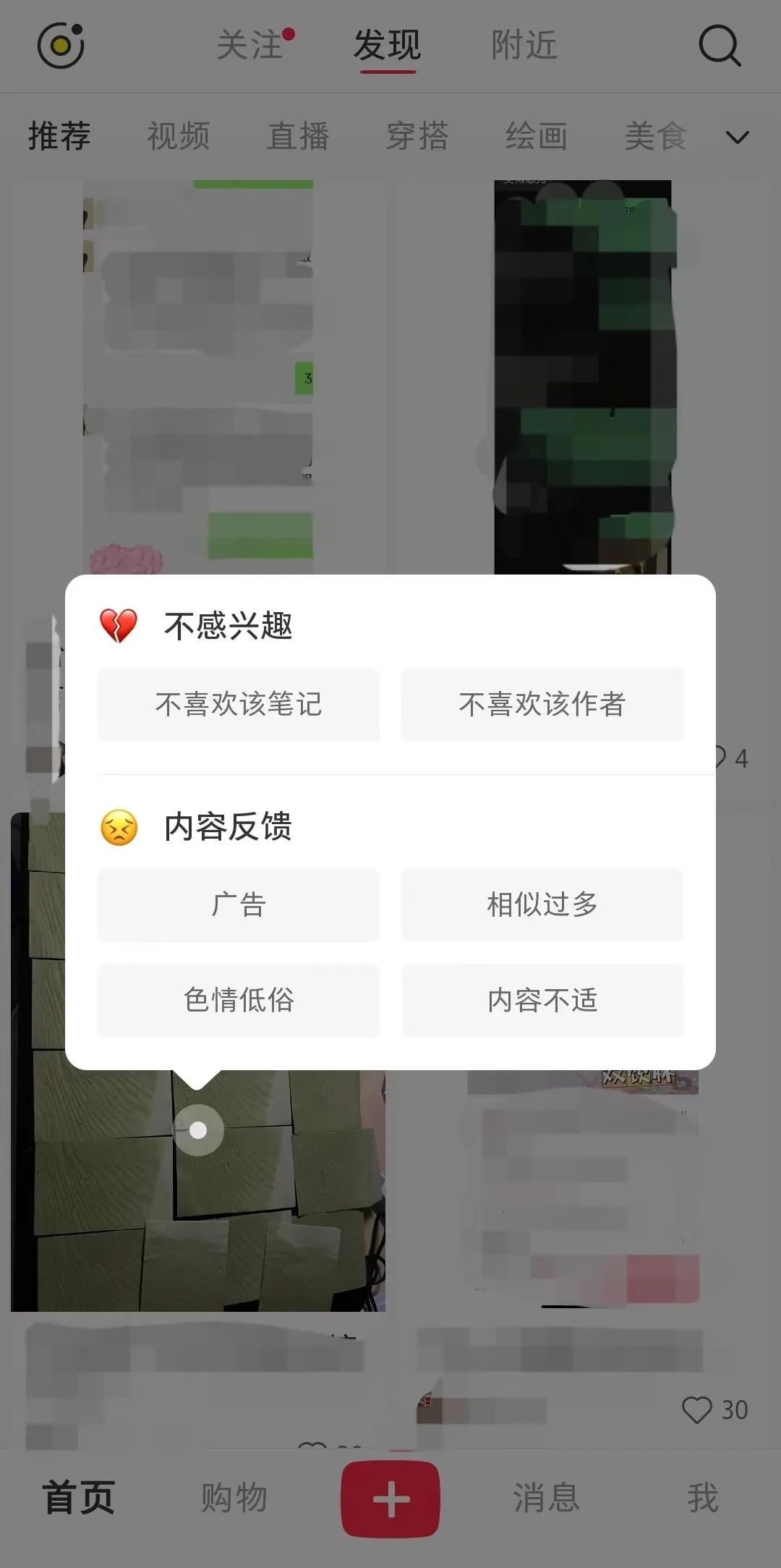 当然,在点踩的基础上,还可以更细致地询问用户为什么点踩,是不喜欢这种类型的内容?还是不喜欢这个作者的表达?进而更好地表达内容的质量和用户喜好,像小红书的“不感兴趣”功能就是如此。