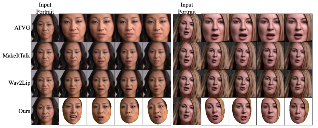 这一部分的训练是在LRW数据集上端到端训练的,对unseen的identity有很好的泛化能力,我们在开源的code中给出了一个one-shot合成的结果。这里也给了一些比较结果: