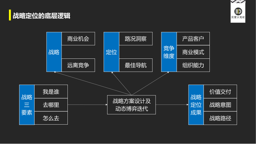 战略定位,是指全局价值的谋略。包括:战略、定位、竞争维度等底层逻辑。