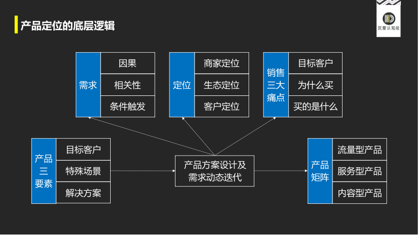 产品定位,是指客户价值的显化。包括:需求、定位、销售痛点等底层逻辑。