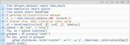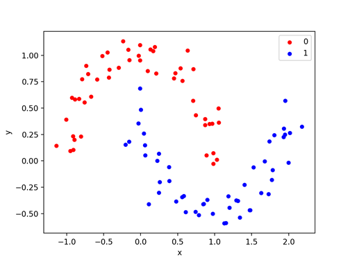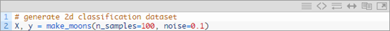 make_moons()函数是用于二分类问题的的,它将生成像漩涡一样,或者像月亮形状一样的数据集。