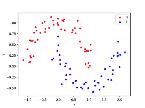 下面的例子产生了一个带有中等噪声的月球数据集。