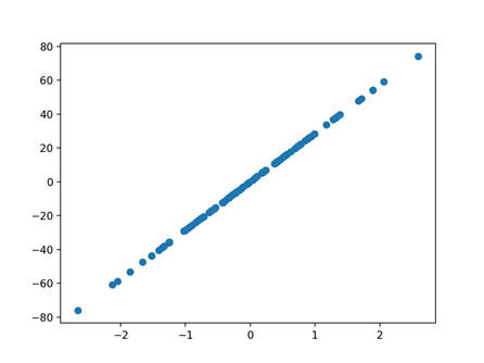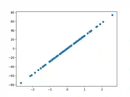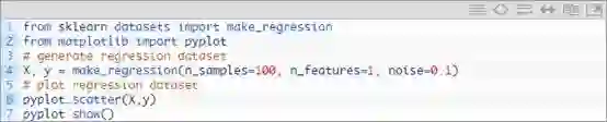 下面的示例将生成100个示例,其中包含一个输入特性和一个输出特性,它的噪声很低。