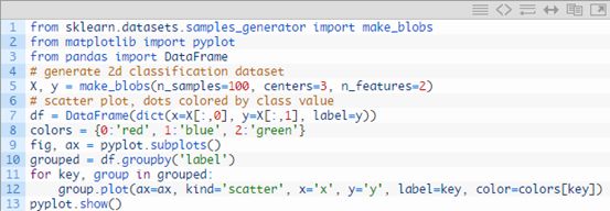 下面的例子生成一个带有三类斑点的二维数据集,作为一个多类分类预测问题。