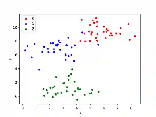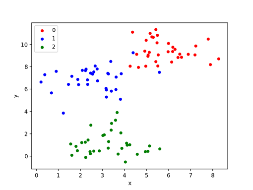 运行这个示例会生成问题的输入和输出,然后创建一个方便的2D绘图,用不同的颜色显示不同的类。