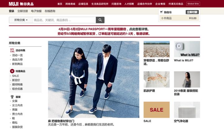 二个比较好的例子就是MUJI和apple,下面分别是他们的app \网页\实体店