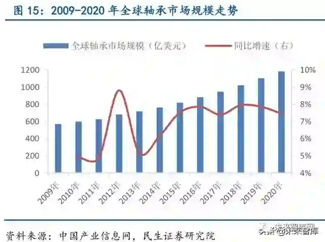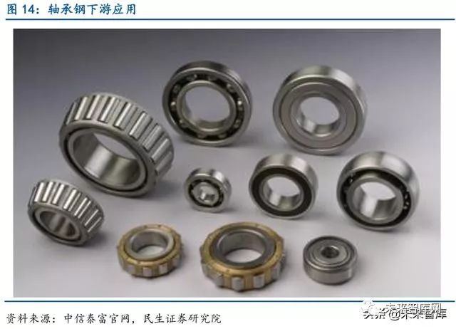 生产要求最严格的特钢品种之一,为机械工业发挥重要贡献。轴承钢是制造各类滚动轴 承套圈和滚动体的合金钢总称,由于需要具有高硬度、耐磨性和高弹性,所以对轴承钢的化 学成分、夹杂物和碳化物的分布和含量等要求十分严格,是生产要求最严格的特钢之一。随 着机械化、自动化的不断发展,轴承被应用于人们工作生活的各个角落,目前轴承的品种已 超过十余万种,轴承的材料从碳钢到铬钢等合金钢,精度达到了微米级,产品被广泛应用于 交通机械、工程机械、精密机床、仪器仪表、轧钢设备、钻探机械、能源等众多领域,为世界机械工业及其它产业的发展发挥着重要的作用。