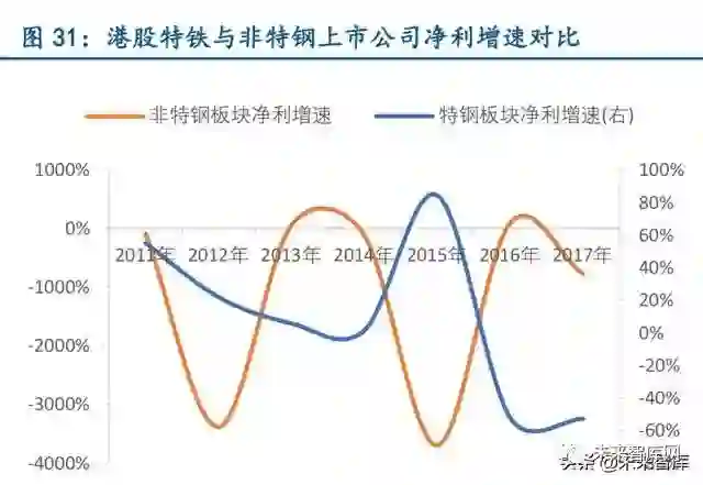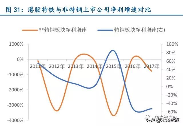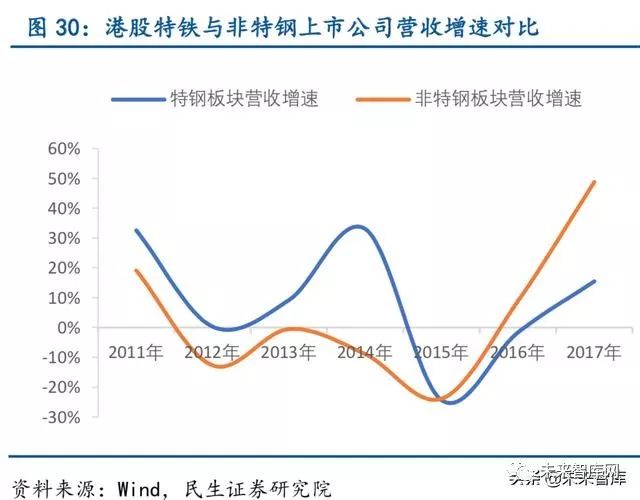 特钢公司具有明显估值溢价。2017 年,天工国际净利增速仅53%,但同期市盈率却达到18 倍,远高于马鞍山钢铁、鞍钢股份等高净利增速公司的市盈率。天工国际的2017 年净利 增速在25 家钢铁上市公司中排名第12,但市盈率排名第2,具有明显的估值溢价。所以通 过观察日本与香港股市,我们认为特钢公司凭借自己高科技属性和稳定的盈利表现,应当享 有一定的估值优势。