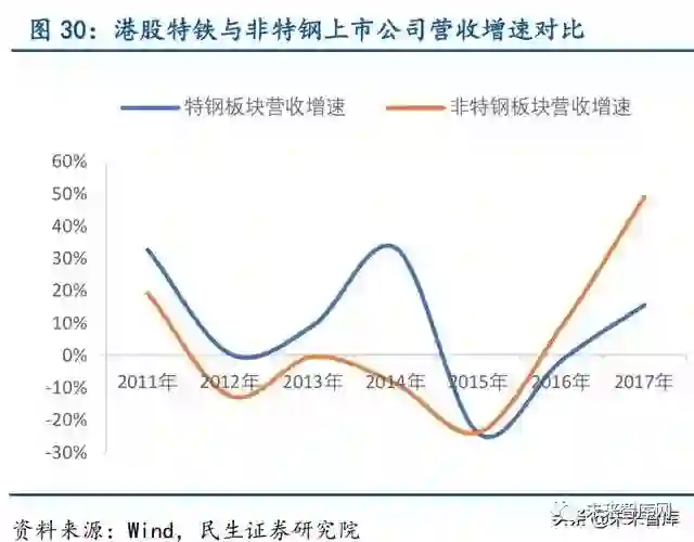 港股特钢公司盈利表现同样稳定。天工国际是港股唯一纯特钢公司,我们将其作为上市 特钢板块,与港交所其他上市钢铁公司进行对比,可以发现港股特钢上市公司营收增速与非 特钢公司基本一致,但净利增速波动幅度远小于非特钢上市公司,其盈利表现同样稳定。
