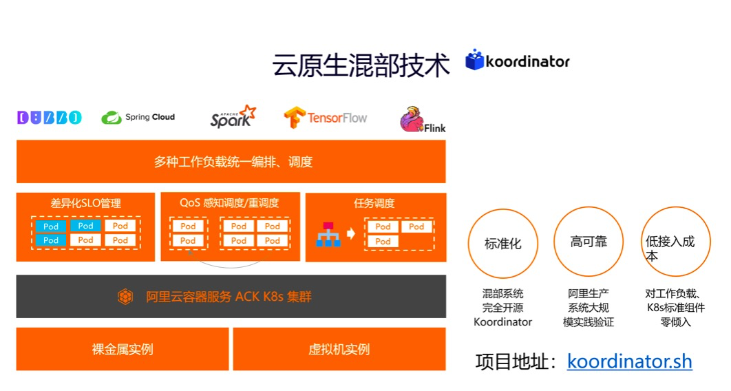 弹性是云最核心的能力之一,可以有效降低计算成本。ACK在资源层和应用层提供了丰富的弹性策略,在资源层,当集群资源不足时,ACK集群可以利用 cluster-autoscaler 在节点池中自动创建新的节点实例。我们可以根据应用负载,选择ECS虚拟机,神龙裸金属实例,进行扩容。基于阿里云强大的弹性计算能力,我们可以在分钟级实现千节点扩容。在ACK集群中一个更加简化的方案是利用ECI弹性容器实例来实现弹性。ECI基于轻量虚拟机提供了 Serverless 化的容器运行环境,具备强隔离、高弹性,免运维、免容量规划的特性。弹性容器实例可以在 30 秒内扩容 3000 Pod,可以轻松应对突发的新闻事件,或者支持自动驾驶模拟仿真这样的批量计算业务。值得一提的是,我们可以使用ECS或者ECI的竞价实例,它可以利用阿里云的空闲计算资源,成本折扣可以低至按量付费实例的 90%。竞价实例非常适合无状态和容错性好的应用,比如批量数据处理或者视频渲染等。在应用层,Kubernetes提供了HPA 的方式进行 Pod 的水平伸缩,和 VPA 进行 Pod 的垂直伸缩。ACK 内建了基于机器学习的AHPA方案、来进一步简化弹性体验,提升弹性的 SLA。K8s内建的水平 Pod 自动伸缩(HPA)有两个不足: 第一个是弹性的滞后性,弹性策略基于对监控指标的被动响应,此外由于应用本身启动、预热也需要一定时间,在扩容的过程中,业务稳定性可能会受到影响;第二个是配置的复杂性,HPA的运行效果取决于弹性阈值的配置。配置过于激进可能导致应用稳定性受影响,配置过于保守,成本优化的效果就大打折扣。需要反复尝试才能达到一个合理的水平。而且随着业务的变化,也会需要重新调整弹性策略。阿里云和达摩院团队合作,推出了AHPA,可以根据历史资源画像,对弹性周期和用量进行预测,提前扩容来保障服务质量,已经在菜鸟PAAS平台、阿里云智能语音服务多种场景经过验证。帮助智能语义交互产品实现90% 的实例在业务来临之前 Ready,CPU 利用率提升 10% 节省 20% 的资源成本。