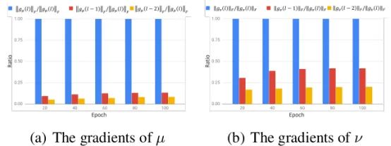 上面这两个公式就是为了估计在t-τ时刻,t时刻的权重下的均值和方差的参数估计。BRN可以看作没有进行该方法估计,使用的依然是t-τ时刻权重的参数估计。其中O为高阶项,因为该式主要由一阶项控制,因此高阶项目可以忽略。上面的公式还要进一步简化,主要是偏导项的求法。假设当前层为l,实际上∂μ/ ∂θ 和 ∂ν/∂θ依赖与所有l层之前层的权重,求导计算量极大。不过经验观察到,l层之前层的偏数下降很快,因此可以忽略掉,仅仅计算当前层的权重偏导。