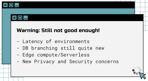 不过,在 Infobip Shift 演讲接近尾声时,他小心翼翼地对自己的理论补充了一句——“我们还没到达那一步”。延迟仍然是在线编码的一个问题,他还提出了对数据库分支、隐私、安全等方面的担忧。