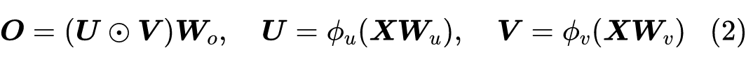 既然 GLU 式的 FFN 更有效,那么我们就以它为基础进行修改。注意到 FFN 不能取代 Attention,是因为它的各个 token 之间没有进行交互,也就是矩阵