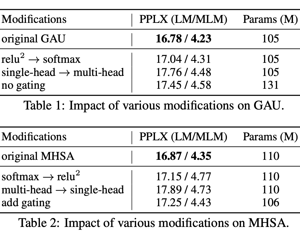 ▲ GAU与多头注意力的一些消融分析