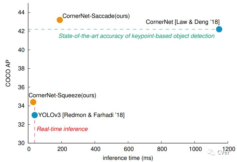 CornetNet 在 ECCV 2018 (oral)上横空出世,引领一波基于关键点的目标检测狂潮(最近anchor-free盛行),但这类算法(很多one-stage)也有缺点。虽然mAP有很大提升,但速度上都远不能达到实时(有些论文就避而不谈FPS了)。这其实可以看成学术阶段的成果,但距离落地应用还有一点距离。