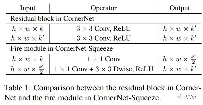 受SqueezeNet启发,CornerNet-Squeeze将 residual block 替换为SqueezeNet中的 Fire module