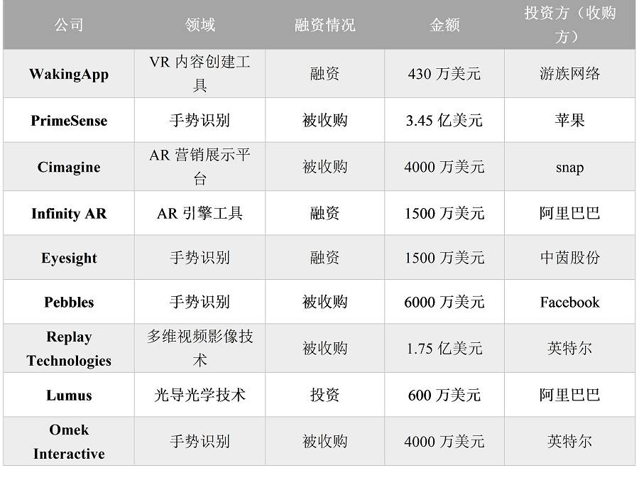 在这样一个创新的国家,自然少不了这几年热起来的VR/AR技术,经常会在头条上看到这样的新闻:“来自以色列的XX公司获得国内XXX的投资。”确实,国内外有不少巨头将眼光瞄准了以色列的这些VR/AR公司,为此,镁客君做了一个统计表格: