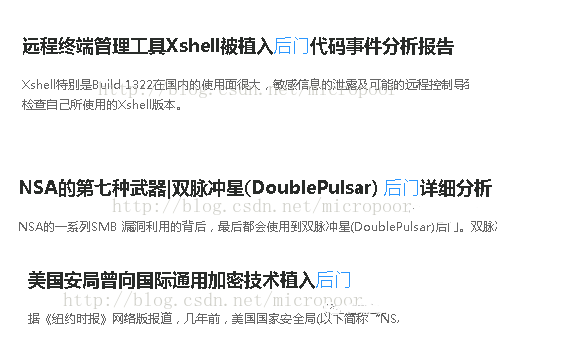 这里的内容作为一个过渡,过渡后门在对抗升级中由传统后门,衍生成锁定目标的制定后门。引用百度百科的“后门程序"的相关解释: