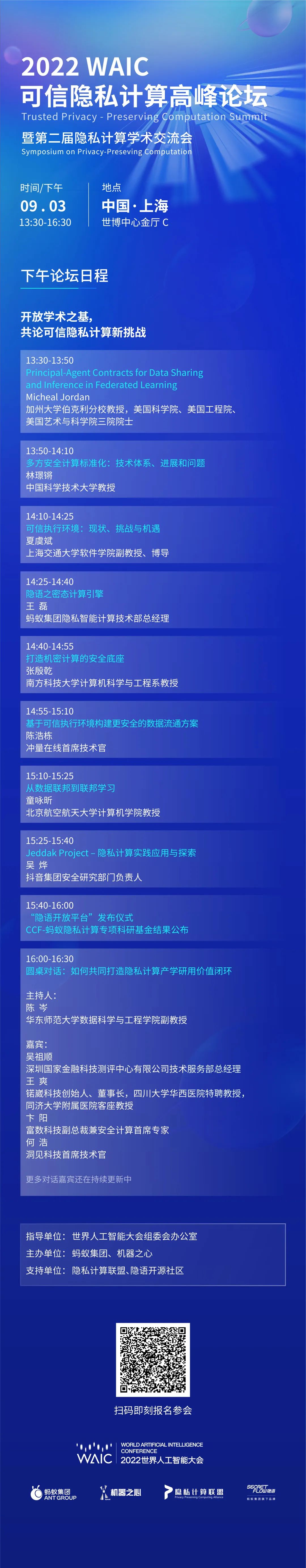 「WAIC 2022 · 可信隐私计算高峰论坛」全日程