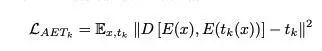 为实现这个目标,可以针对每种变换tk使用MSE损失函数来来计算AET损失从而达到增强编码器E的目的。