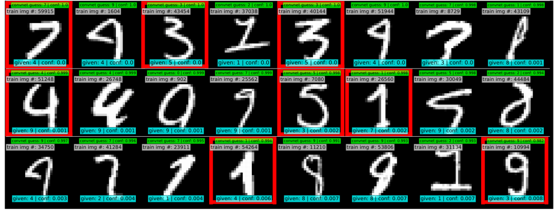 我们来看看cleanlab在MINIST数据集中找出的错误样本吧,是不是感觉很🐂~
