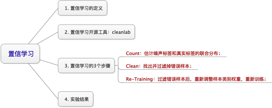 置信学习开源工具cleanlab操作起来比较容易,但置信学习背后也是有着充分的理论支持的。事实上,一个完整的置信学习框架,需要完成以下三个步骤(如置信学习框架图所示):