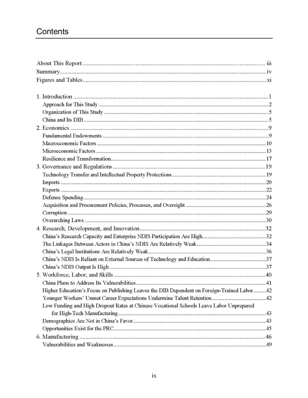 国防工业基础具有庞大规模但对内外均不透明报告认为:中国国防工业基础规模庞大,涵盖范围广,外部机构很难对深层次的结构性问题分析透彻,难以评估国防工业基础中国有企业与其他企业的关系,也无法充分分析民营企业在国防工业基础中的角色。甚至在某些领域,政府对国有企业和其他军工供应商也缺乏全面掌握了解。