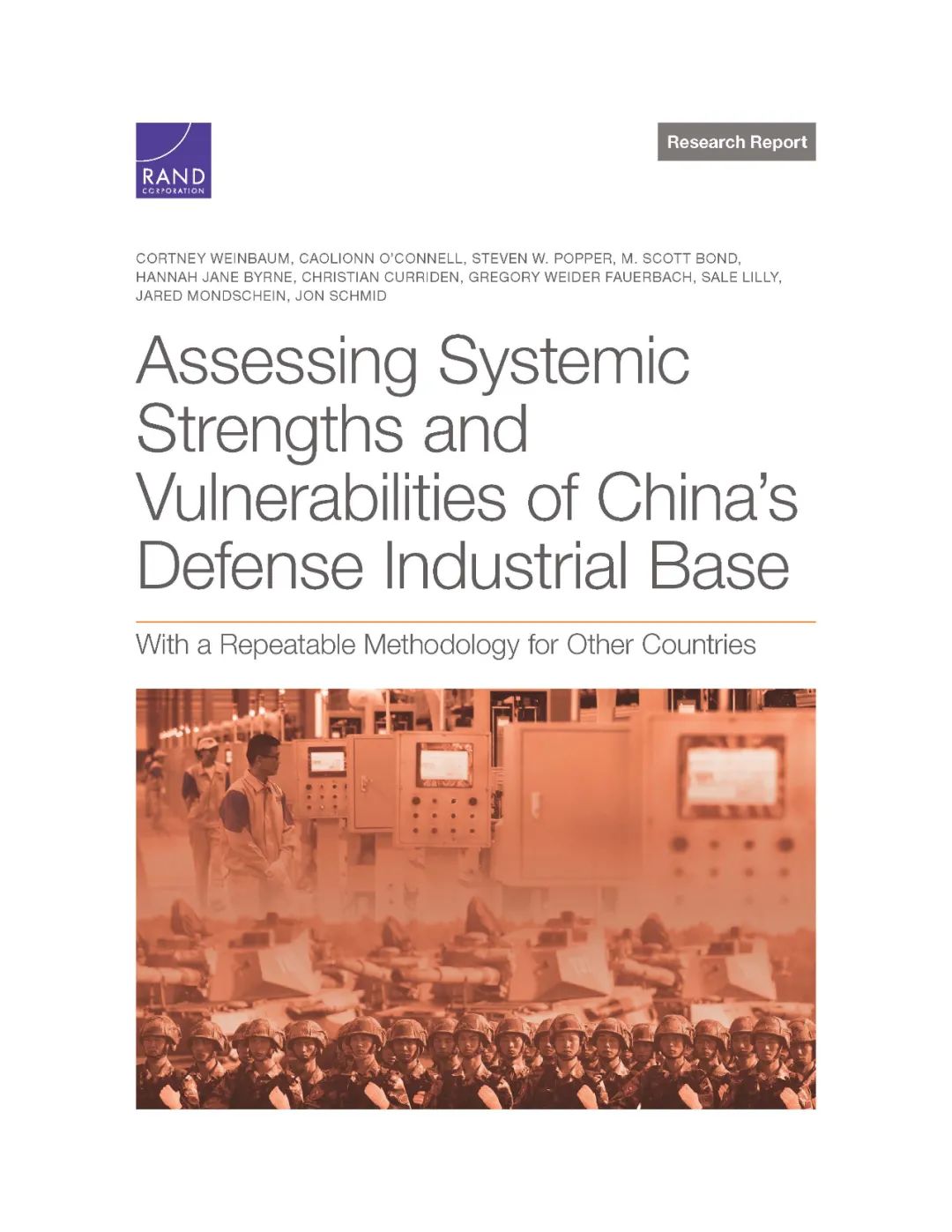 2022年2月,美兰德公司发布了《中国国防工业基础系统性优势和弱点评估》报告。这项评估工作依据《2021财年国防授权法》要求,受美国防部委托开展。报告设定了六个评估主题,分别为经济、治理和法规、研发和创新、劳动力和技能、制造业、原材料。其中,劳动力、制造业和原材料以定量评估为主,经济和治理为定性评估。研究数据来源为公开信息,根据相关资料研究创建了一种通用性评估方法,可应用于评估任何国家,并按照《国防授权法》要求首先对中国开展评估。该报告于2021年10月完成,经安全审查后本月正式发布。
