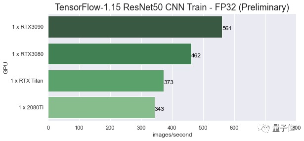 话不多说,先看数据。在FP32任务上,RTX 3090每秒可处理561张图片,Titan RTX每秒可处理373张图片,性能提升50.4%!
