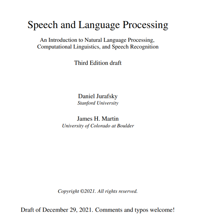 全文 pdf 链接:http://web.stanford.edu/~jurafsky/slp3/ed3book_dec292021.pdf