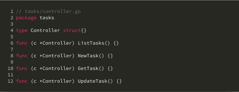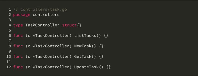 不过,这个做法有一个非常别扭的地方。考虑当我们需要在 controllers 包外引用 TaskController 的情形,代码会出现 controllers.TaskContoller 这样的形式。Golang 官方的 Effective Go 对于这样会造成引用方出现重复短语的包名称,认为这并不是好的命名方式。这个问题的本质其实又涉及到 Golang 的另一个独特之处,就是从其他包中引入的常量、变量、函数、结构体以及接口,都需要加上包的前缀来进行引用。