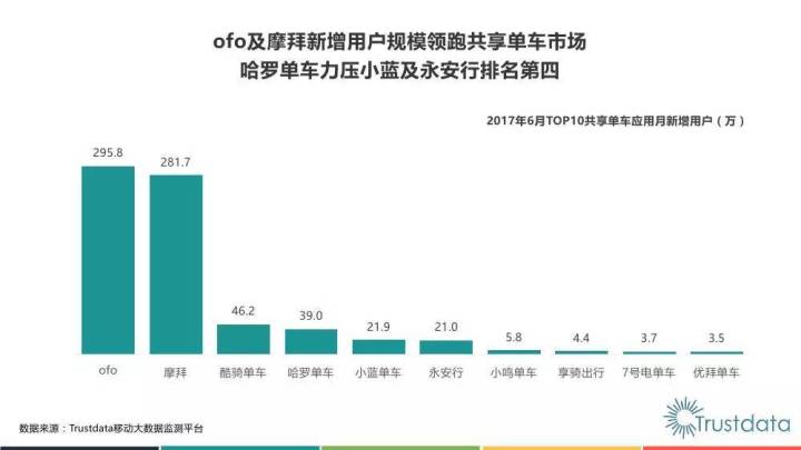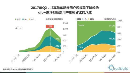 Trustdata数据显示:共享单车新增用户从2017年4月开始放缓