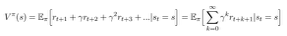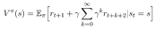 状态价值函数描述了在执行一个策略时的状态值。这是一个从状态s开始执行我们的策略Π所得到的预期回报: