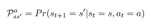 P是过渡概率。如果我们在状态s处开始,采取行动a,那么我们在状态s’的概率为。