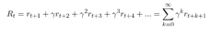 正如前面所说的,强化学习中的智能体学习如何最大化未来的累积奖励。这个用来描述未来的累积奖励的词称为回报,通常用R表示。我们还使用下标t来表示在某个时间步骤下的返回值。数学公式的表示如下: