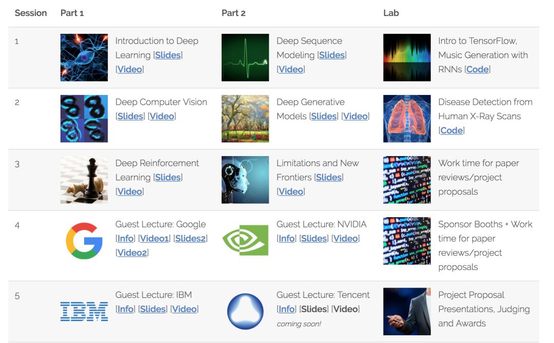 MIT本次推出的这门公开课,邀请了四家明星企业:Google、NVIDIA、IBM和Tencent作为嘉宾,一起分享深度学习的相关内容,也是默默无闻的搞大事情啊。