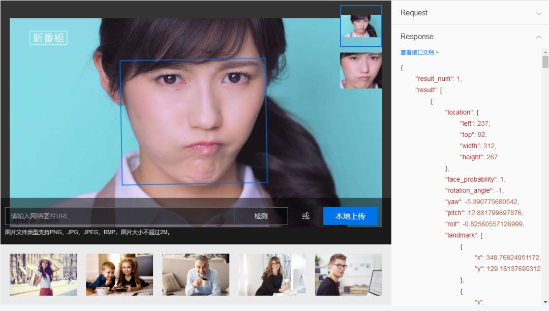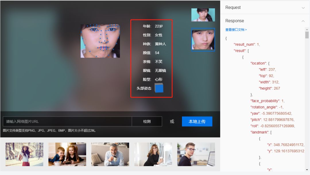 图2.2 Baidu AI开放平台人脸API的功能演示