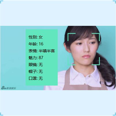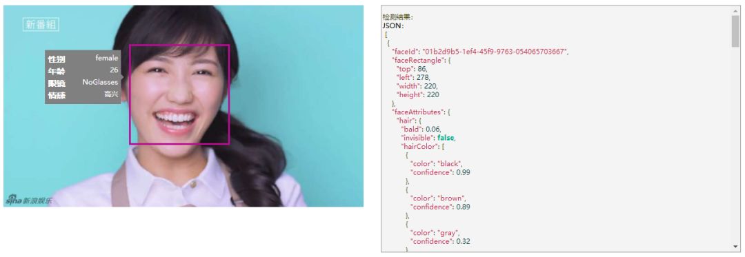 该API包括人脸验证、面部检测、以及表情识别等几部分。对于人脸API已集成的表情识别功能,可针对图像上所有面部的一系列表情(如气愤、蔑视、厌恶、恐惧、高兴、没有情绪、悲伤和惊讶)返回置信度,通过JSON返回识别结果。可以认为这些情感跨越了文化界限,通常由特定的面部表情传达。