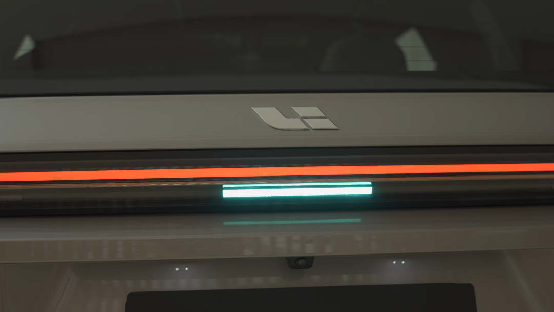 之前由于上开尾门和上下对开“天地门”的设计,李想和一些用户还有过一阵辩论。最终基于物品拿取的便利性,L9 还是装备了传统的上开尾门。考虑到地库空间,L9 的尾门感应器被装在保险杠的侧后方,左右各一个,避免了踢开后人要躲避尾门的尴尬。雨刷和一个辅助驾驶专用摄像头藏在扰流板里面,让 L9 的外部造型精简了一些。