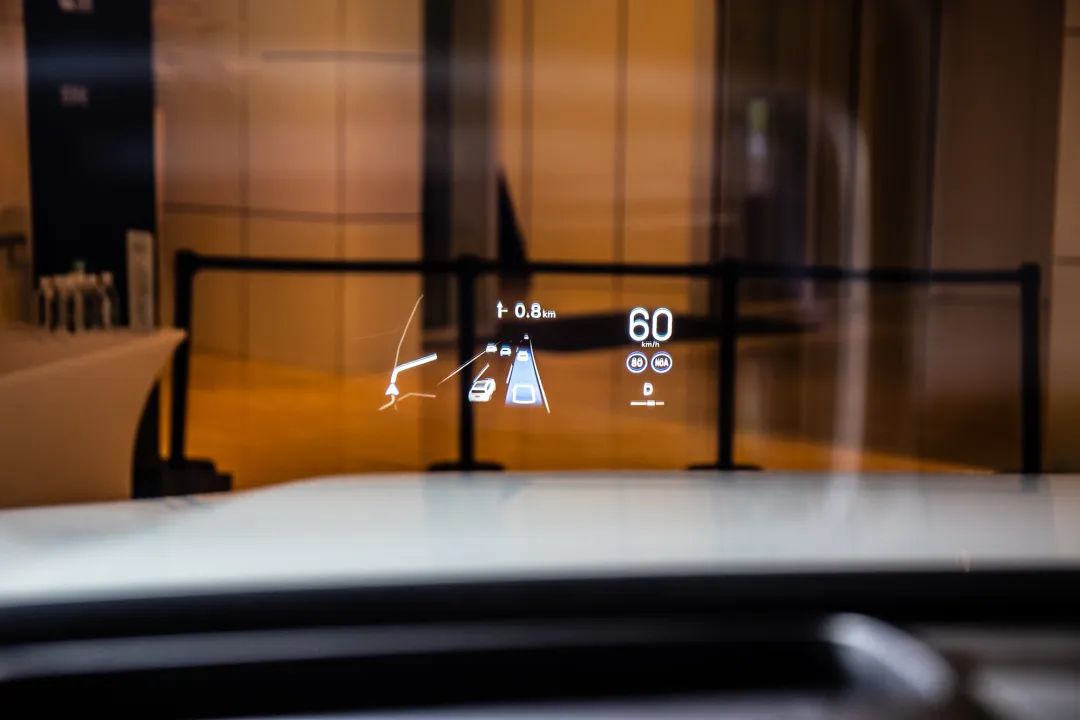 导航、基础辅助驾驶信息、功率表和转向灯信息,放到 12.3 英寸 HUD 上显示,至于更详细的 NOA 辅助驾驶、警示灯内容则交给中控屏幕,这样能让仪表台视觉上更宽敞。