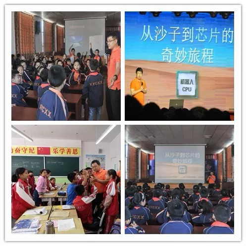 志愿者第二分队中科院计算所研究员韩银和、江南计算所某要求匿名的研究员分别为120师学校和育才学校的初中生带来了“从沙子到芯片的奇妙旅程”科普课,让学生们了解了芯片制造流程。在育才学校,滴滴出行科技合作总监吴国斌以 “我们眼中的未来交通”为题,启发学生畅想未来的交通工具和出行方式,并介绍了现在正在使用的智慧出行技术。北京邮电大学教授乔秀全和山西农业大学副教授胡欣宇则为120师学校和千城小学的小学生介绍了VR技术,同学们通过体验,感受到科技的魅力。在课堂上可以看出孩子们兴趣浓厚、头脑灵活,有不少奇思妙想的问题和回答,让我们也感到很欣慰,“扶贫先扶智”绝不是一句空话。