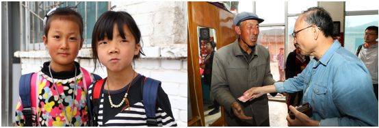 左图:陶家村小学仅存的两个学生 右图:CCF秘书长杜子德向王*晶爷爷表达慰问