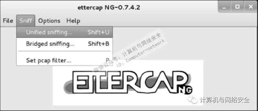 若要进入Ettercap的图形模式,可在终端中使用下述指令。