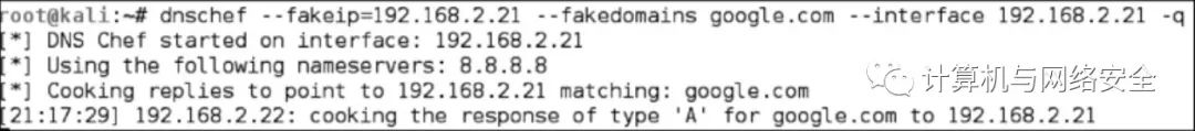 这将把被测主机与google.com之间的全部通信诱导到攻击人员部署的Web服务器上。