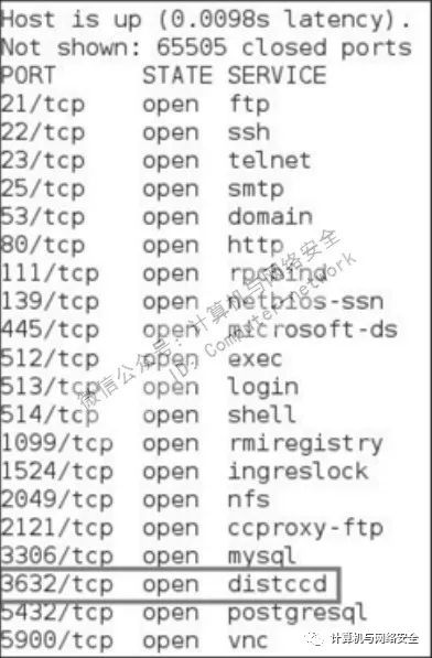 我们通过网上资料确定distccd服务存在漏洞,可被用来执行任意指令。这个服务是一种分布式的编译工具,可协调多台主机协助完成大规模的编译任务。