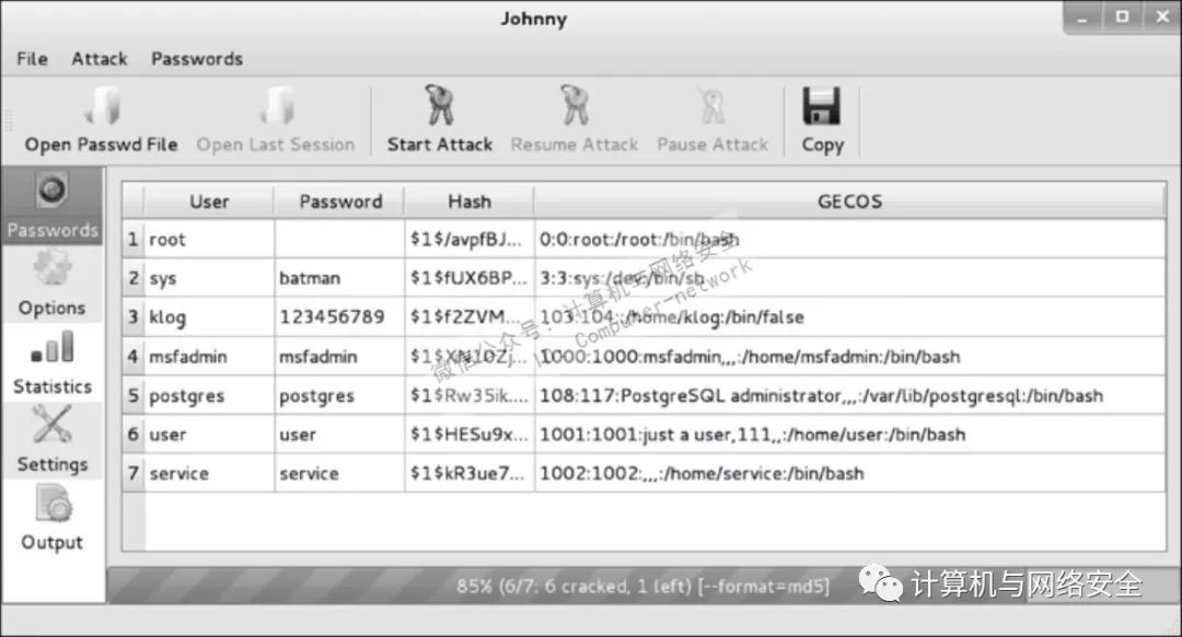 在利用SQL注入漏洞之后,测试人员就可导出整个数据库,继而可找到密码的哈希值。离线破解工具可以帮助测试人员从哈希值中获取记录的原始信息。