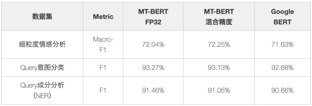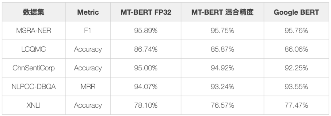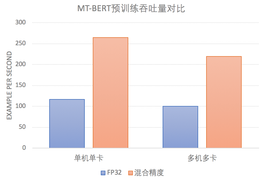 为了提高预训练效率,我们在MT-BERT预训练中采用了混合精度训练方式。