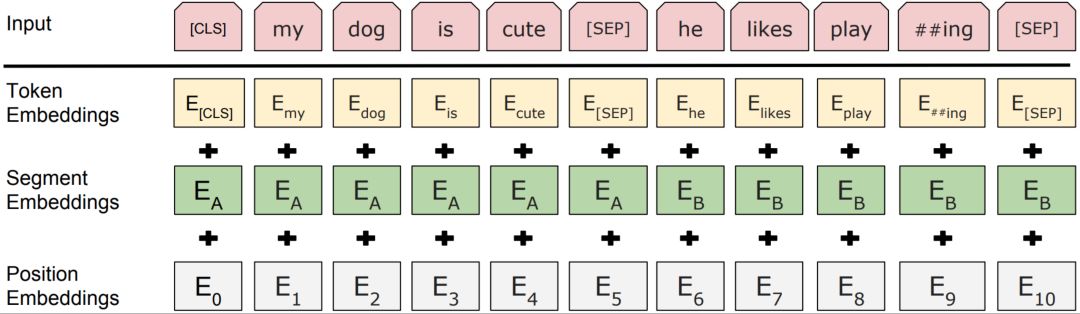对于单句输入,只有一种Segment Embedding;对于句对输入,会有两种Segment Embedding。