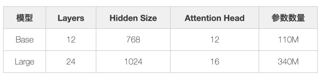 如表1所示,根据参数设置的不同,Google 论文中提出了Base和Large两种BERT模型。