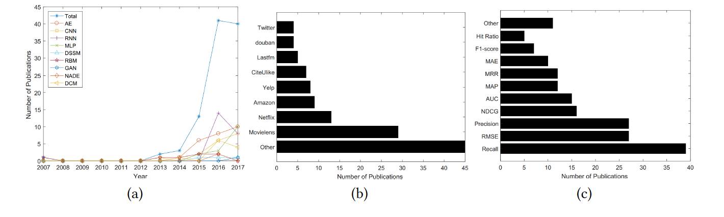 随着线上信息的体量、复杂度和动态性的不断增长,推荐系统已经成为了一种可以有效解决这种信息过载问题的关键性解决方案。近几年,深度学习的革命性进步在语音识别、图像分析和自然语言处理方面都受到了广泛关注。与此同时,近期的一些研究也说明了深度学习在处理信息检索和推荐任务中的有效性。由于其一流的性能表现和高质量的推荐结果,将深度学习应用于推荐系统已经获得了动力。与传统推荐模型相比,深度学习可以更好的理解用户需求、项目特征及其之间的历史性互动。